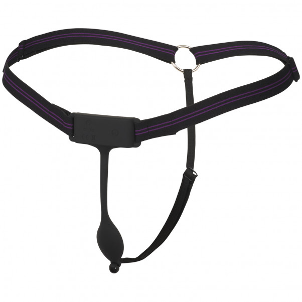 This provocative vibrator has 10 vibration modes of various intensity and patterns to tease your sensitive nub. The tip is shaped like a spoon to nuzzle your clitoris. The vibrator is easily attached to a belt that comfortably rests on your waist or hip. The toy connects to a string that turns the panty into a thong.