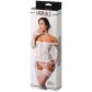 Slip on the barely-there thong and attach the included white stockings with lacy details to the basque’s suspender straps to fully seal the deal.