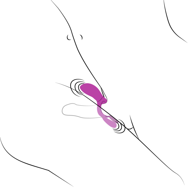 Slide the stretchable inner ring down the penis and enjoy the tight fit of the firmer outer ring at your base. The ribbed surface of the stimulator rubs against the clitoris while the lower legs tilt backwards to lean against your balls. Wear the ring like this, or flip it to switch the pleasuring parts.