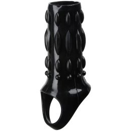 Give your bedroom buddy the gift of extra girth to enhance pleasure for you both. The sleeve hugs the shaft and boasts a ball loop to hold the sleeve securely in place.