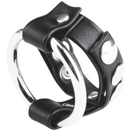 Slide your penis through the metal ring and wrap the faux leather straps around the base of your penis and balls. Grabbing your best bits in a tight hug, the heavy metal ring feels weighty while helping you last longer and experience harder erections.
