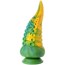 The tapered tip is begging to lick at your openings before diving deep with its widening shaft. Two rows of octopus suckers run the length of one side, while the other is ribbed from the circular ridge design. Together, the two sides provide monstrous stimulation and superb fantasy details.