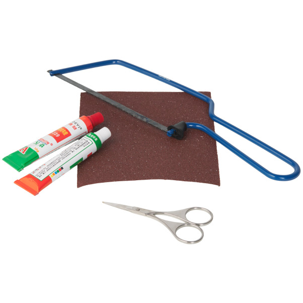 CONTENTS: Three sleeves in different sizes, cylinder with accessories, saw, scissors, sandpaper and glue.