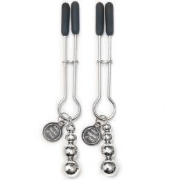 The Pinch Nipple Clamps from the official range of Fifty Shades of Grey sex toys is a pair of beautiful nipple clamps in metal, for those who can enjoy pleasure and pain. They are adjustable, so you can get just the pressure and tightness you desire - therefore this product works for both the novice and experienced.