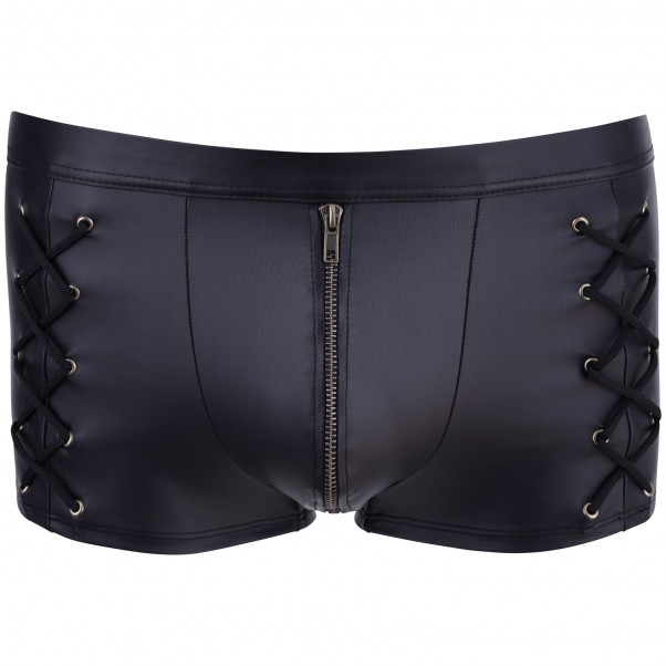 The boxers are soft and smooth to the touch, and the material has a slight stretch to it, so all your goods are wrapped with care. The shorts are decorated with lace-ups on the hips, and they have a functional zipper on the front for a sexy reveal and easy access. The zipper is lined with a protective layer to prevent catching.