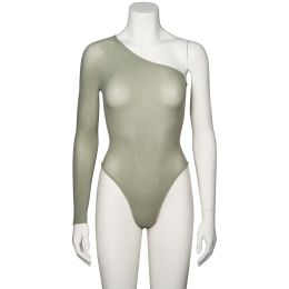 Indulge in a sleek, see-through bodysuit with the Araceae One Sleeve Bodystocking from NORTIE. This one-shoulder body hugs your curves and features a cutout back in a beautiful green.