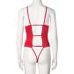 The red body has bra cups trimmed with soft white lining, while the back features an open, strappy design that ends with the all-too-cheeky thong. Wrap the skirt around your hips with the black satin belt to hide your tush until it’s time to unwrap.