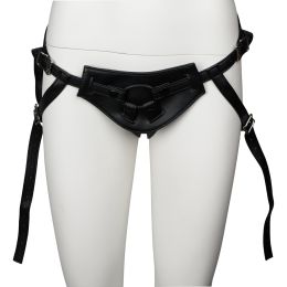 Embark on a thrilling adventure with this faux leather harness from obaie. This versatile harness is designed to accommodate a range of dildo sizes, thanks to the three included O-rings of different diameters.