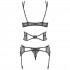 Stun your partner with outrageous sex appeal as you wear Frivolla from Obsessive, a four piece set that includes a bra, suspender belt, lace belt and thong. It is a strappy set, inviting your partner to untangle you before you both entangle in each other.