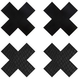 These kinky black crosses are self-adhesive, making them easy to put over the nipples.