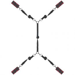The cuffs are fastened to a strap, which is then attached to a cross-strap hidden under the bed (see image. 3, to the left of this description). You can then easily attach your hands and legs to the bed. The cuffs are removable and can also be used separately.