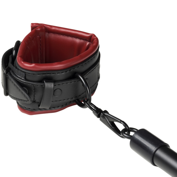 The adjustable black and red cuffs firmly secure the wearer with buckle closures and the swivel snap clip connectors help you make any kinky position possible.