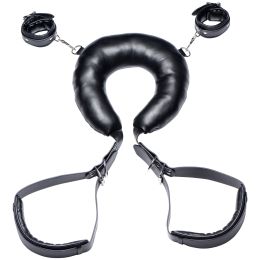 CONTENT: Handcuffs, 6 attached D-rings, thigh straps, neck support.